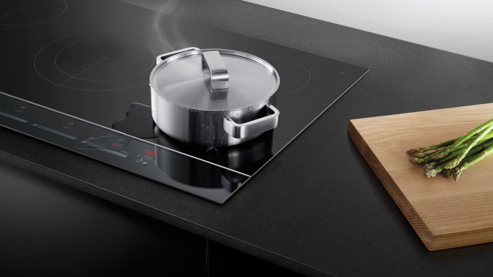 No heat is wasted during induction cooking because only the cookware is heated, not the surface of the hob. This makes induction hobs more energy-efficient than electric or gas hobs.
