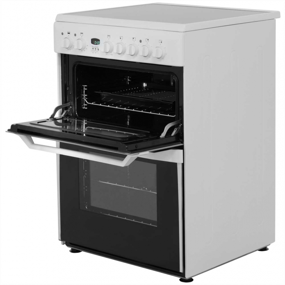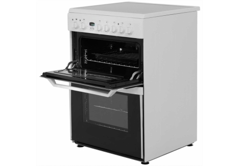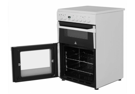 Enjoy versatile cooking with this great white electric cooker from Indesit, rated BB for energy efficiency. It has a main fan oven that’s ideal for batch baking or preparing different dishes at once, because it circulates heat so that food cooks evenly on every shelf. There’s also a second conventional oven which has a handy grill setting, so it’s perfect for preparing quick snacks. You’ll be boiling and steaming in no time as the ceramic hob heats up really quickly, and thanks to its smooth surface, it’s easy to clean as well.