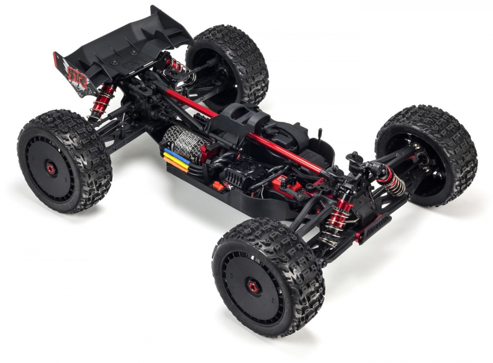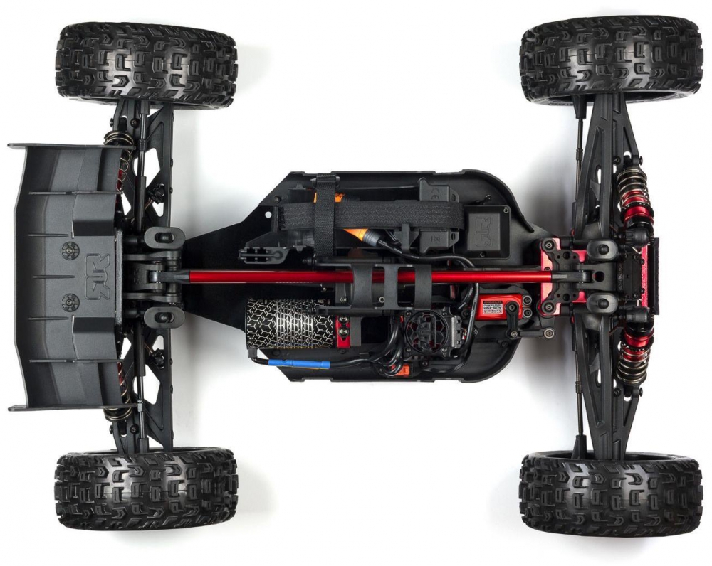 ARRMA® cuts your maintenance downtime to the bone with its smart, driver-friendly design. A sliding mount allows quick, hassle-free motor access. The center diff is easy to reach and can be removed by taking out just five bolts. Topping it all off is an aerodynamic truggy body that cuts through resistance for maximum speed - while its low profile helps keep the wheels planted and pouring on power.