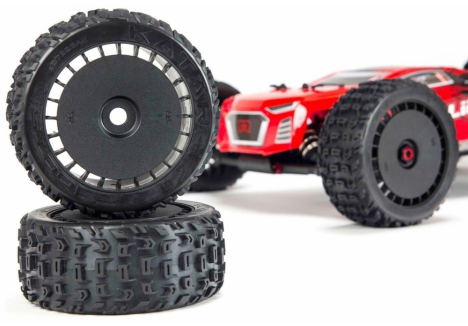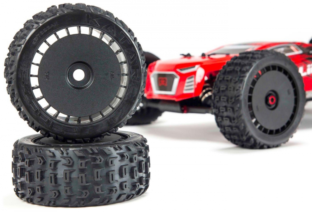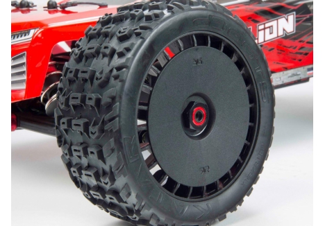 Low-drag MT wheels with extra-strong hubs arrive outfitted with aggressive, multi-surface DBoots® KATAR tyres. A multi-element, high downforce wing helps keep the truggy grounded. Both contribute to confident control and responsive handling on- or off-road.