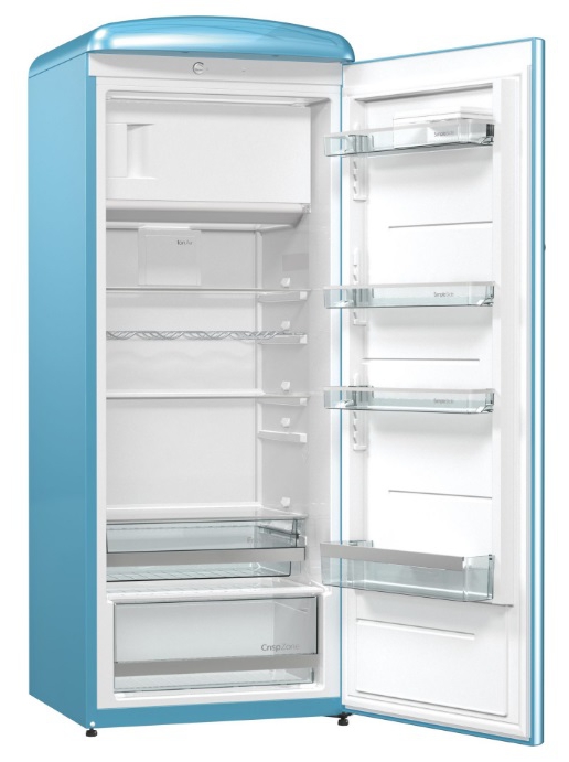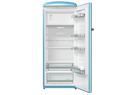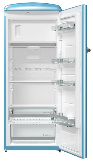 Keep your favourite foods at their best with this stylish blue Gorenje fridge. Thanks to its 229 litre capacity, you can fill the shelves with 12 shopping bags packed with delicious meats, cheeses and desserts. It won’t need manually defrosting because it’s an auto defrost model, but the ice box has to be defrosted occasionally. To keep everything fresh, innovative Ion Generation technology circulates clever particles inside, creating the perfect environment for your groceries while banishing odours. Fruit and vegetables will stay fresher for longer too, as the HumidityControl in the CrispZone drawer lets you set the ideal climate to suit what’s inside.