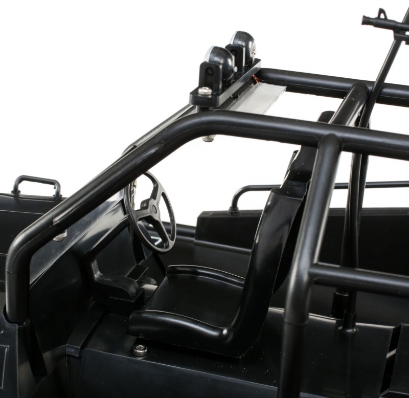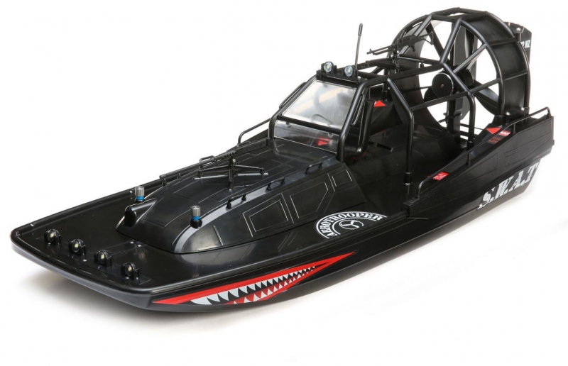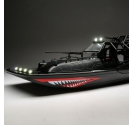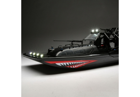 Yes. The integrated LED lighting system enables nighttime operation and adds visual realism to tactical-themed runs. Mounted strategically across the hull, the lights illuminate the vessel’s path and enhance its scale appearance. Combined with the black trim scheme and molded cockpit, the lighting transforms the Aerotrooper into a visually striking platform that performs as well in the dark as it does in daylight.