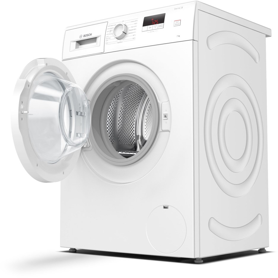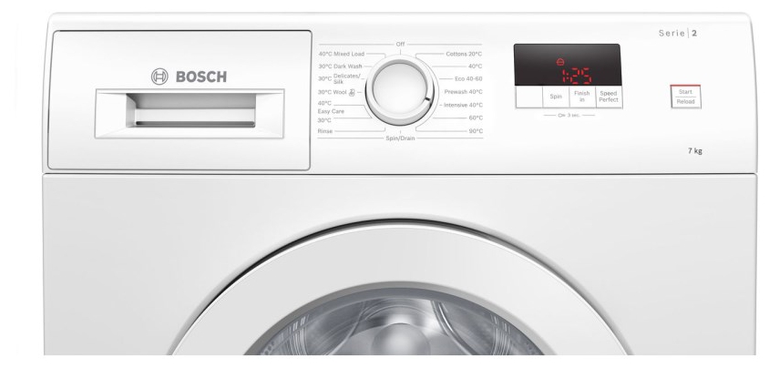 Give yourself a helping hand on laundry day with this washing machine from Bosch. It has a 7kg drum capacity, making it ideal for medium-sized households. When you need a lot of washing done quickly, then the handy SpeedPerfect option will clean a full load in just 60 minutes. Clever ActiveWater™ technology helps give your clothes specialist care too, as it automatically adjusts the amount of time, energy and water used to suit each load. This also means it’s kinder to the environment. And if your kitchen is open plan or you prefer to put the machine on at night, this model is extra quiet, thanks to the ecoSilence drive inside which uses magnets instead of noisy brushes.