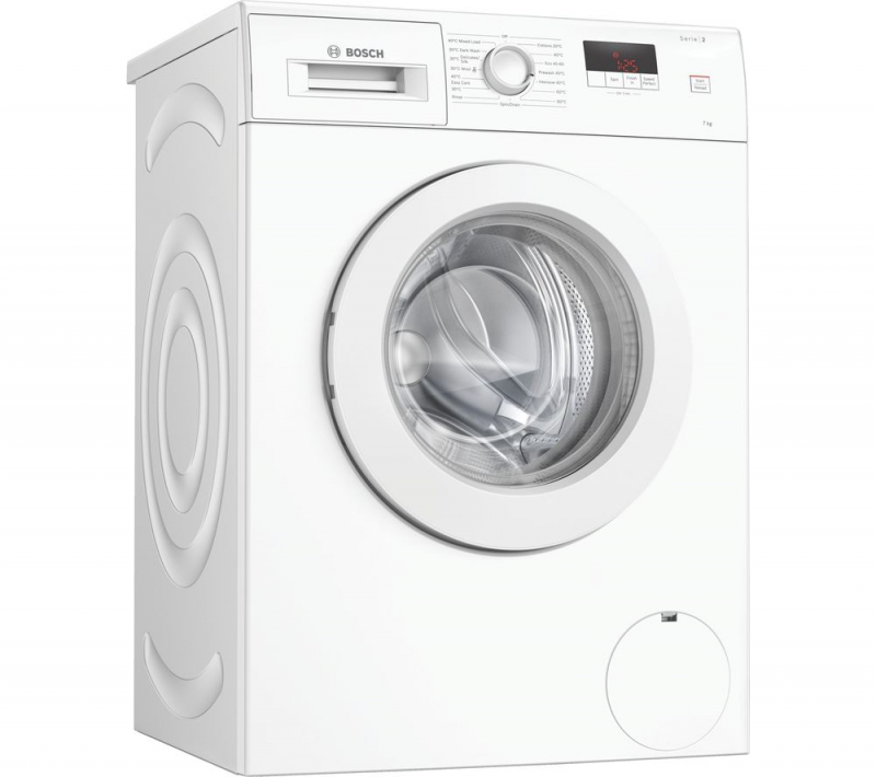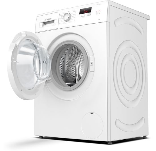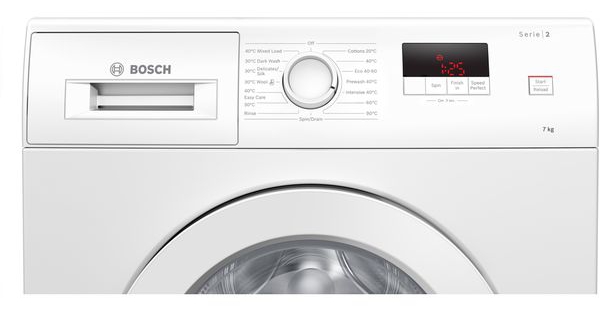 Make light work of laundry day with this washing machine from Bosch. With a 7kg drum capacity, it’s ideal for medium-sized households. The SpeedPerfect option is great when you need clean clothes fast, as it will wash a full load in just one hour, leaving your laundry spotless. Innovative ActiveWater™ technology gives your clothes specialist care by automatically adjusting the cycle based on the weight of the laundry. This means only the exact amount of time, energy and water is used with every wash, making it kinder to the environment. And if you have an open-plan kitchen, the ecoSilence drive makes this model whisper quiet, because it uses magnets instead of noisy brushes.