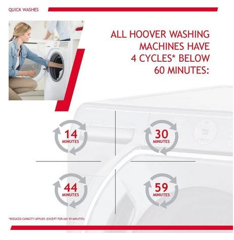 In a rush? Do your laundry in as little as 14, 30 or 44 minutes with the Quick Wash feature. Enjoy freshly cleaned clothes in no time, thanks to Hoover’s innovative engineering. You can also set a delay start of up to 24 hours, so you can fit the washing in around you and your family.