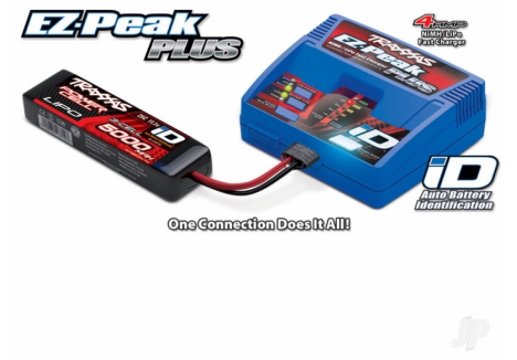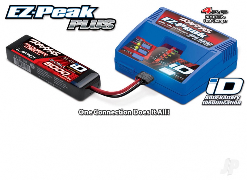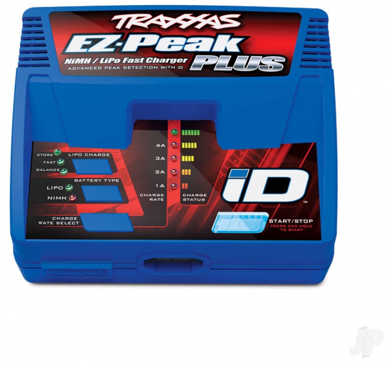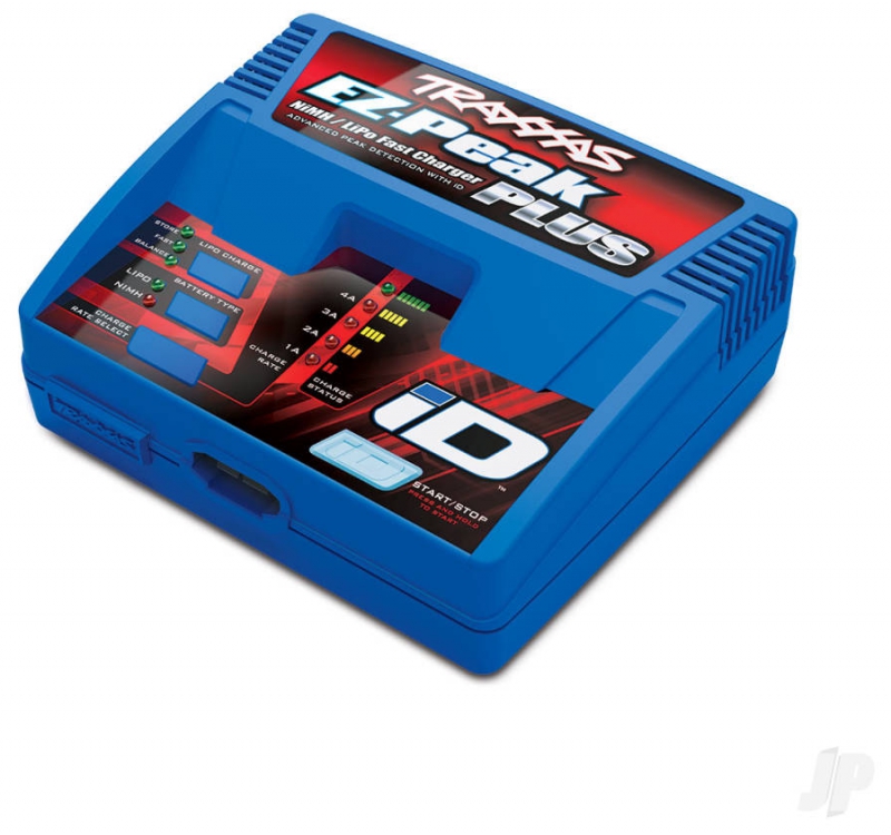 The Traxxas iD battery system is the easiest and safest way to charge your Traxxas batteries. The EZ-Peak Plus recognises Traxxas iD batteries and in an instant automatically configures and optimises the charger settings. There's no need to be a battery expert or learn how to navigate complex menus. Just plug in a Traxxas iD battery and EZ-Peak Plus (#2970) does all the work for you. The integrated balance connector on Traxxas LiPo iD batteries eliminates fragile balance wires and connectors, along with the need for external balance boards. At the press of a button, the EZ-Peak Plus' Storage Mode protects your LiPo battery investment by safely preparing the batteries for extended storage. 4-amp fast charging and advanced high-resolution peak detection deliver a perfect charge every time. The EZ-Peak Plus is backed by the Traxxas Lifetime Electronics Warranty for years of reliable service.