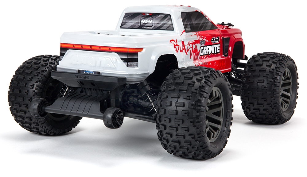 Enjoy terrain-commanding Monster Truck excitement with the jaw-dropping power and 50+ MPH brushless performance of the ARRMA® GRANITE™ 4X4 3S BLX Monster Truck. Precision aluminum, tough steel and composite materials come together for an easy-to-maintain, super-durable vehicle design that's now upgraded for even greater performance and durability.