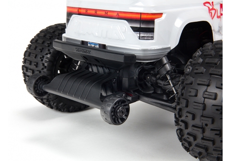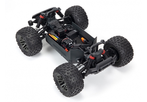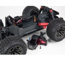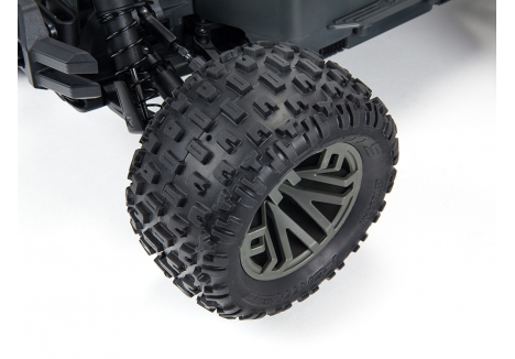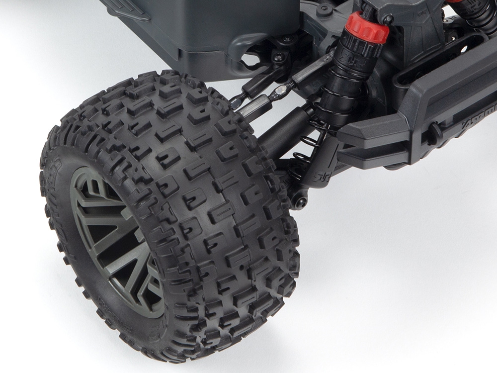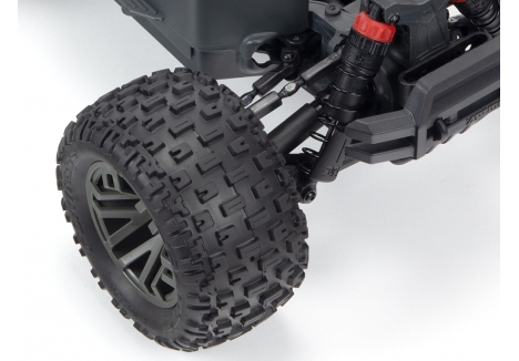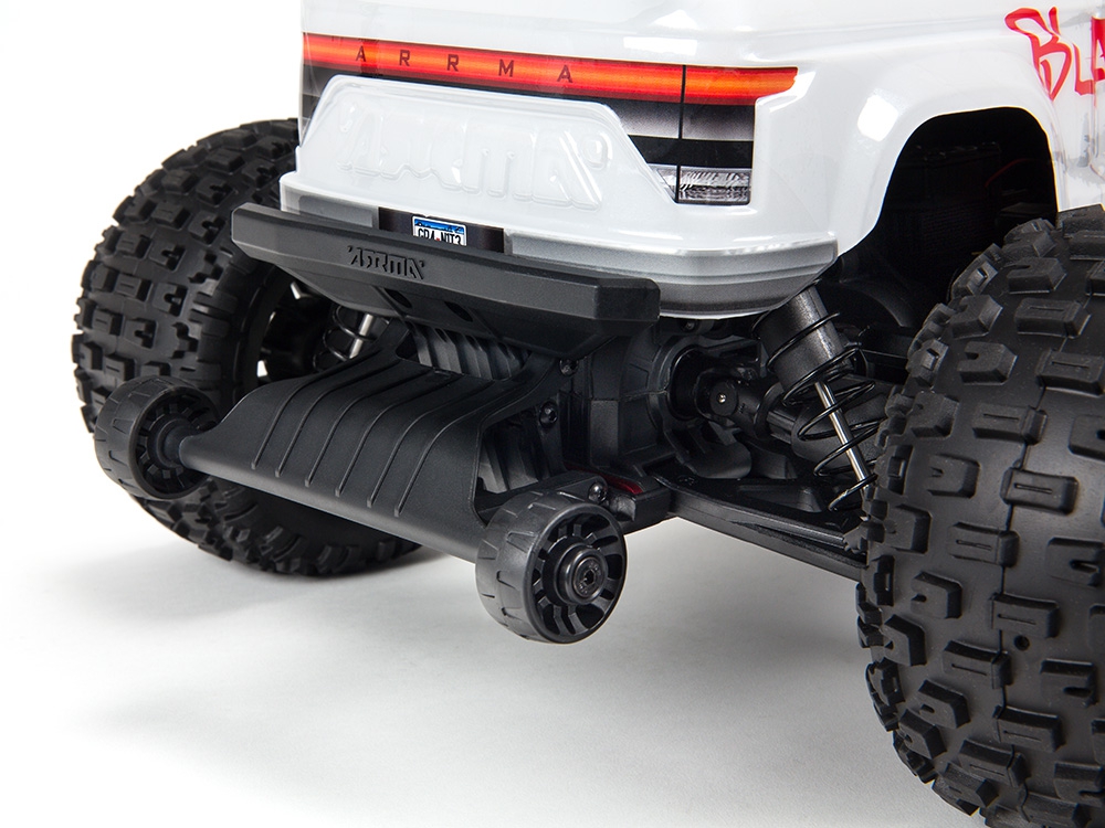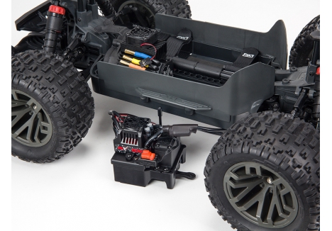 Four dBoots® Fortress™ MT tyres on gunmetal multi-spoke wheels give the GRANITE™ 4X4 3S BLX superb bite on a multitude of surfaces. ARRMA® has also installed a wheelie bar as standard. The aggressively styled truck body looks great while bashing and even better up-close and personal, with great attention to detail on the decal and body aesthetics. Choose green or red trim schemes.