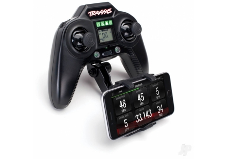 The new Traxxas RC Transmitter Phone Mount (#6532) provides a convenient mounting base for your mobile device on TQi and Aton transmitters. This mount makes monitoring real-time telemetry and adjusting settings simple, keeping your device secured to the radio for easy access. Spring loaded clamps hold a variety of mobile devices to the mount, and the base swivels and tilts to customize the position. Get the most from Traxxas Link telemetry accessories and apps with the new Transmitter phone mount.