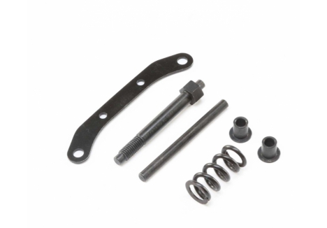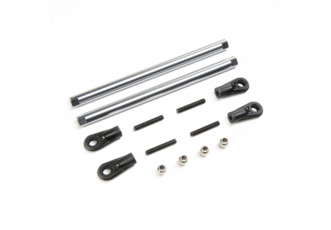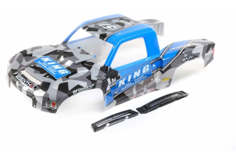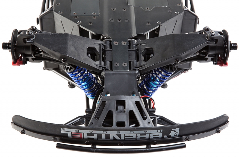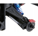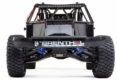 The Losi Super Baja Rey RC truck with long travel suspension and King coil-over shocks is engineered for aggressive off-road driving. The redesigned front suspension arms accommodate slider-style front driveshafts, allowing for increased travel and improved articulation. At the rear, the extended trailing arms and 4-link solid axle setup provide stability and control over uneven surfaces. The King coil-over oil filled shocks are tuned with new springs to absorb impacts and maintain traction, ensuring that the truck performs consistently across jumps, whoops, and rocky paths. This suspension system is built to take punishment and deliver performance.