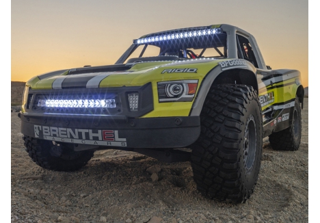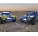 The Losi Super Baja Rey LOS05021T1 with AVC control and LED light bars is a yellow 1/6 scale desert truck engineered for serious off-road performance and scale realism. Built on a reinforced 4mm anodised aluminium chassis and integrated with a super-rigid composite roll cage, this large-scale brushless 8S truck delivers exceptional durability and aggressive styling. Whether you're tackling rough terrain or launching into wide-open desert runs, the Super Baja Rey combines long travel suspension, dual spare tyres, and a bottom-loading battery tray for unmatched usability and control. With licensed Method Racing Beadlock wheels and BFGoodrich Mud-Terrain T/A KM3 tyres, this truck is ready to dominate any surface with authority.