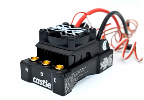 CRYO-DRIVET, Castle's proprietary breakthrough technology integrates unique software and dedicated hardware to reduce heat and dramatically increase performance. Thousands of times per second, the XLX2 software minimizes the amount of time the electrical components spend generating heat. These software advancements work in parallel with an open housing design which enables increased directional airflow to cool critical components. With the combination of a new 50mm fan and forged elliptical fin heatsink, the XLX2 maximizes airflow throughout the system, taking thermal performance to a whole new level. The results are more power handling, cooler ESC temperatures and longer run times and for ultra-high performance.