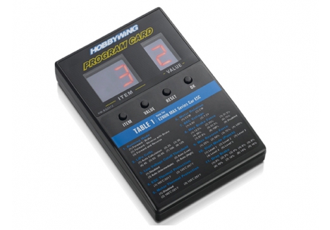 The Hobbywing LED Program Card is used to program Hobbywing XERUN, QUICRUN and EZRUN series ESC's. It features a user friendly interface and is easy to use. Package includes program box and 3-wire male/male plug for hooking the programmer to the ESC.