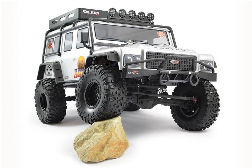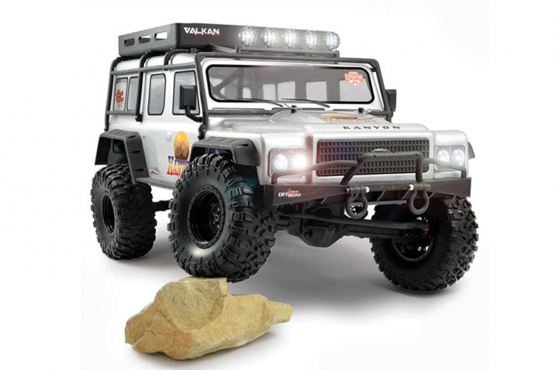 The Kanyon’s off road inspired semi-scale bodyshell features a number of additional moulded accessories such as wheel arches, luggage tray, roll cage, front grill and head, tail and spotlights. To wrap things up 13 factory installed LED lamps provide the necessary illumination for you to keep your rig on the trail long after the sun goes down.