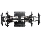 The split transmission layout provides a much lower centre section allowing for aftermarket interiors to be mounted for added scale realism. The moulded side chassis plates have aluminium plates on the exterior while the inner plates provide protection from the elements as well as mounting receiver and Hobbywing speed control. The moulded receiver box features additional plug in ports for LED lights and aftermarket winches.