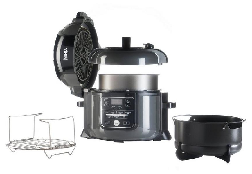 Large 6L cooking pot 3.7L Cook & Crisp basket Reversible Rack Pressure Lid Defrost, cook, and crisp meals straight from frozen – perfect for days when you need to raid the freezer. Dinner ready before you are? The Ninja Foodi 7-in-1 Multi-Cooker can keep your meal warm for up to 12 hours after cooking.
