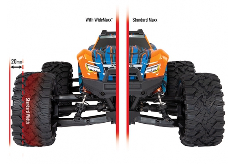 The WideMaxx kit for the Traxxas MAXX ratchets up the fun with a wider track for next-level high speed handling and extreme performance. Now, this kit has been updated to include new extended outer half shafts for increased spline engagement and even more extreme performance.