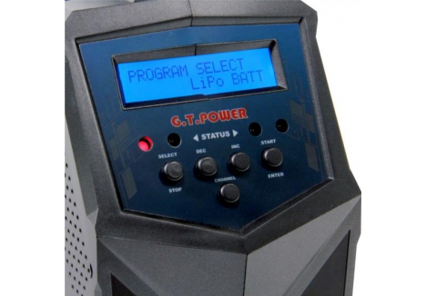 - Product Type: GT Power GTP0149 X4 charger with 4x100W outputs and independent charge/discharge channels, GT Power GTP0149 multi-chemistry charger for LiPo, LiHV, LiIon, LiFe, NiMH, NiCd, Pb batteries, GT Power GTP0149 4-port charger with AC/DC input and peak detection circuitry, GT Power GTP0149 with 0.1–7.0A charge rate and 0.1–1.0A discharge rate, X4 charger with backlit LCD screen and 2x USB outputs (5.3V 2.3A)