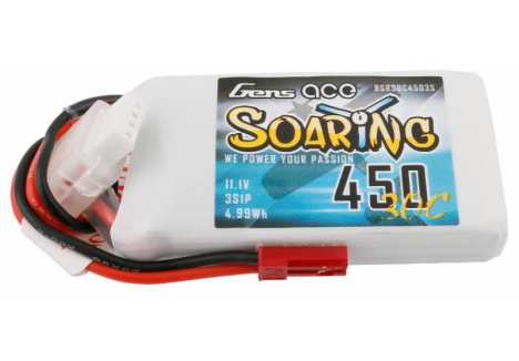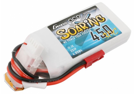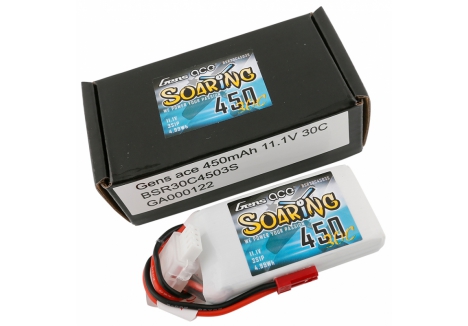 Gens ace Soaring 450mAh 11.1V 30C 3S1P Lipo Battery Pack comes with strong body and very reasonable price. This battery is also very easy to balance. It's the high quality and reliable power you need.