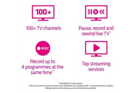 The Freesat UHD-4X-1000 1TB Recorder in Anthracite is the ultimate Freesat solution for families who never want to miss their favourite programmes. Record up to four shows at once, pause and rewind live TV, and enjoy catch-up apps in one sleek box.