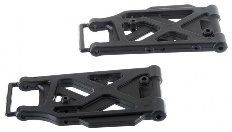 The Arrma AR330192 rear suspension arm set with long-lasting material and handling adjustment options includes one left and one right arm, ensuring symmetrical suspension geometry. Balanced arm design is critical for maintaining predictable handling and even tyre wear. The long-lasting composite material retains its shape and strength over time, supporting consistent performance across multiple driving sessions. This combination of matched geometry and durable construction contributes to a more stable and responsive RC experience.