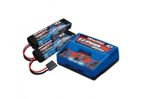 The EZ-Peak dual 2s LiPo completer pack includes two 2869X 2-cell 7600 mAh 7.4-volt LiPo batteries and a 2972 EZ-Peak Dual 3s LiPo charger. Traxxas LiPo completer packs deliver the ease and simplicity of 1-button charging with the Traxxas iD system. There's no need to be a battery expert or learn how to navigate complex menus. Just plug in your iD-equipped battery and press Start. The EZ-Peak charger does all the work for you. Get back in the action quickly with the faster, easier, and safer way to charge your premium Traxxas Power Cell LiPo batteries.