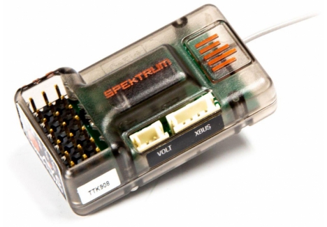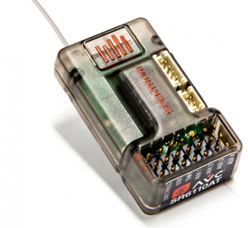 The SPMSR6110AT receiver throttle port includes Smart Throttle. This port will automatically detect when a Smart throttle electronic speed control is plugged in and the throttle port will begin to operate in Smart throttle mode. When combined with Spektrum Smart LiPo batteries with IC series connectors can pass along battery data from compatible Spektrum Smart batteries. The SPMSR6110AT also features two integrated telemetry ports that are compatible with telemetry capable DSMR transmitters. If a standard ESC or servo is plugged into the throttle port on the SPMSR6110AT receiver, the throttle port will operate normally like any conventional receiver.