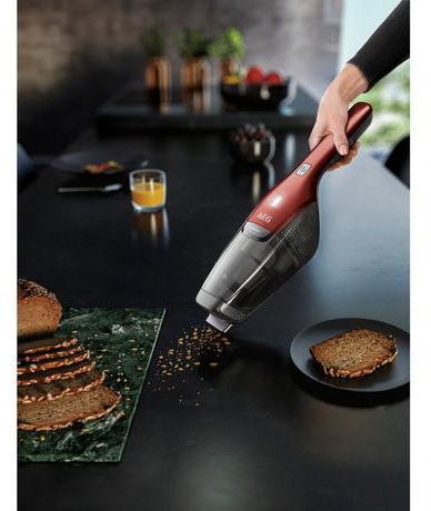 Two power levels ensure no dirt is missed while the double filtration filter keeps it locked inside the appliance. A charging indicator light will le you know when it needs recharging while the stylish red design will look great in any home.