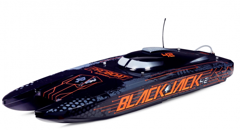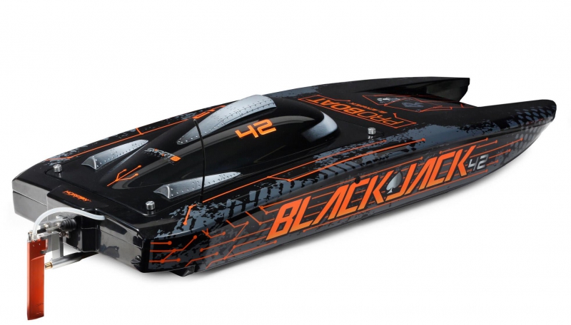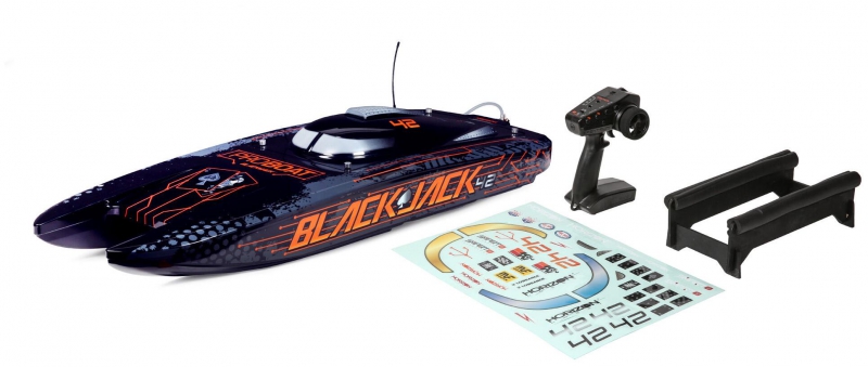 - Product Type: Pro Boat PRB08043T1 Blackjack 42 inch 8S brushless catamaran RTR, Pro Boat PRB08043T1 Blackjack 42 inch Smart-enabled RC catamaran with DX3 transmitter, Pro Boat PRB08043T1 Blackjack 42 inch RC boat with 5.3 horsepower motor and telemetry receiver, Pro Boat Blackjack 42 PRB08043T1 with impact-resistant polycarbonate hull and aluminium rudder, Pro Boat Blackjack 42 PRB08043T1 with composite interior and breakaway rudder system