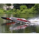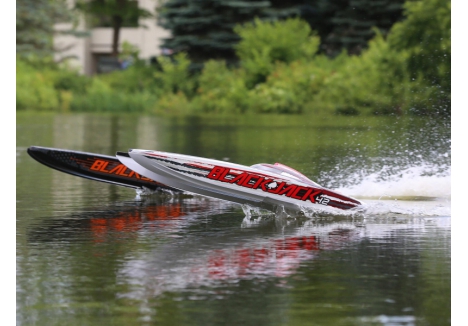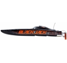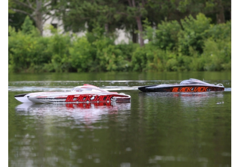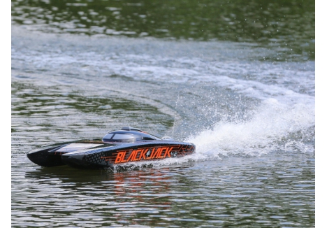 The Pro Boat® Blackjack™ 42 Brushless 8S Catamaran is a return to the days of large-scale racing boats taking on all comers with style and speed. The 8S-rated Spektrum™ 160A High Voltage, water-cooled, Smart™ electronic speed controller works tirelessly to power the Spektrum™ Marine 4685 4 Pole, water-cooled motor which is capable of producing up to 5.3 horsepower and hitting 55+ MPH! There is no other boat in this size, with this much power, at such an affordable value. Of course, everything is controlled by the Spektrum Smart™ System making this speed demon incredibly intelligent. A Spektrum DX3™ Transmitter and waterproof SR6110AT 6-Channel Telemetry Receiver keeps everything tightly connected for an interference free operation with built-in telemetry. The Blackjack also features an impact resistant polycarbonate hull, polycarbonate canopy with aluminium thumb screws, a clean moulded composite interior, and an aluminium rudder and propeller strut. Lay your cards on the table and make the lake your own with the Pro Boat Blackjack 42 Catamaran.