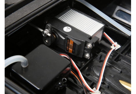 The high torque digital servo provides all the necessary power. Waterproofing makes sure the servo is up to the task of being in a boat without the risk of failure do to getting wet.