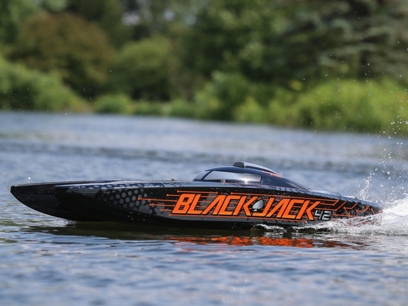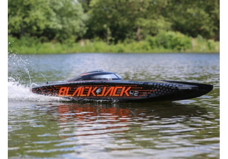 The Pro Boat® Blackjack 42 Brushless 8S Catamaran returns you to the days of large-scale racing taking on all comers with style and speed. Now featuring Spektrum Smart, there's no other boat in this size with this much power.