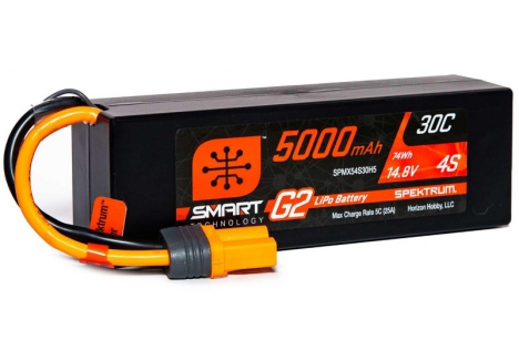 - What batteries does this RC catamaran need and how long does it run? — The Blackjack 42 requires two 4S 5000mAh 50C+ LiPo batteries with IC5 or EC5 connectors connected in series to create an 8S configuration. With these batteries, you can expect approximately 20 minutes of running time under normal operating conditions. Spektrum Smart LiPo batteries are fully compatible and provide intelligent charging and monitoring features.