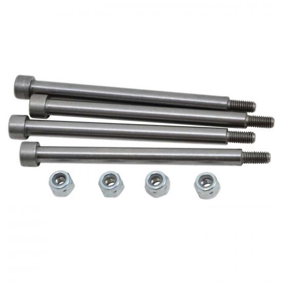 Tech Notes: RPM Threaded Hinge Pins are 4mm x 56mm and work in the outer A-arm hinge pin location. Each kit comes with 4 – threaded hinge pins and 4 – M3 locknuts. Our hinge pins can be used as a replacement for CEN GS025 hinge pins as well but RPM versions use a 3mm locknut instead of a 4mm version. When used with the X-Maxx (using stock or RPM A-arms), some minor modification of the A-arms is required for the hinge pins to fit (see instructions for more information).