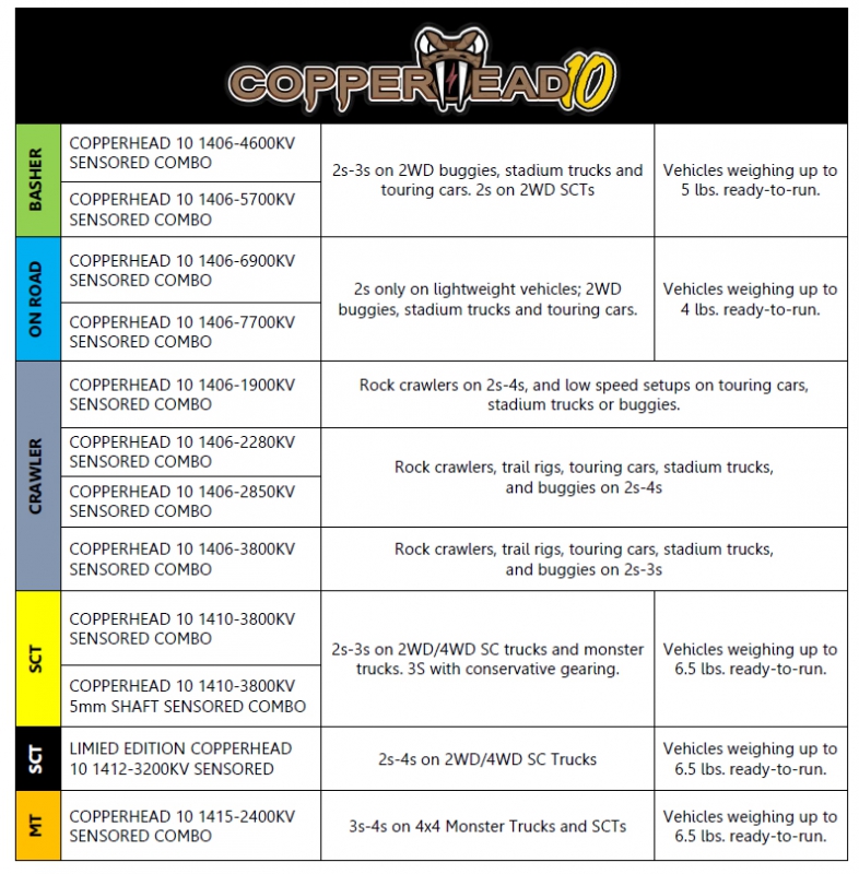 We've packaged the COPPERHEAD 10 with a dozen different 4-POLE 12-SLOT sensored motor options to eliminate the guesswork in finding the right brushless power upgrade for your basher, crawler, on road vehicle, short course or monster truck. An added bonus of pairing your Copperhead with a Castle 4-Pole 12-Slot sensored motor is enabling SMARTSENSET TECHNOLOGY, which uses the motor's sensors at startup to provide cog-free starts, excellent torque and low-speed drivability. Once the motor is turning, the ESC seamlessly transitions to Castle's ultra-efficient sensorless mode with electronic timing to advance timing automatically for peak performance in all driving conditions.