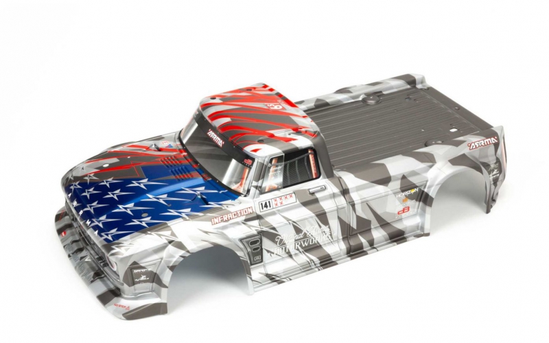 The ARRMA INFRACTION 6S BLX Painted Body delivers an aggressive silver/red finish, robust polycarbonate build, and precise factory fitment, ready to install out of the box. It arrives pre-painted, pre-trimmed, and pre-decaled, making it a hassle-free upgrade or replacement. Designed specifically for the INFRACTION 6S BLX platform, this shell combines performance with authentic ARRMA styling.