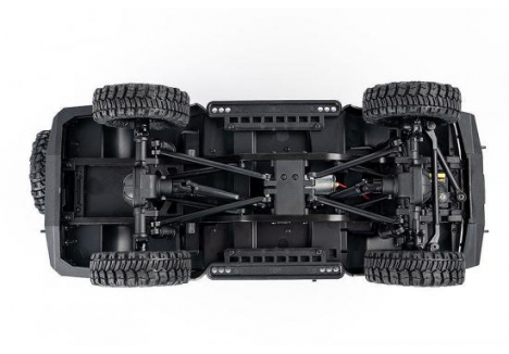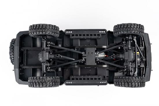 Power is delivered from the super high-torque gearbox to ultra grippy beadlock tires via nylon driveshafts.