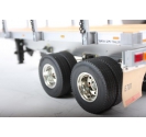 The Tamiya TAM56306 1/14 scale semi-trailer with chrome radial wheels and metal friction dampers includes a full set of chrome-plated wheels fitted with treaded tires. These components not only enhance the trailer’s appearance but also improve its performance on varied terrain. The treaded tires provide grip and cushioning during movement, while the chrome finish adds a polished look that complements the visual styling of Tamiya’s tractor trucks. These wheels are mounted to a solid axle suspension system, which allows for smooth articulation and consistent contact with the ground during towing.