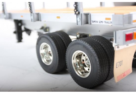 - Product Type – Tamiya TAM56306 flatbed trailer with aluminum ladder chassis, Tamiya flatbed trailer with wood platform and realistic treaded tires, Tamiya 1/14 scale semi-trailer with chrome radial wheels, Tamiya trailer with solid axle suspension and corner frame detailing, RC semi-trailer with dummy dampers and aluminum front panel