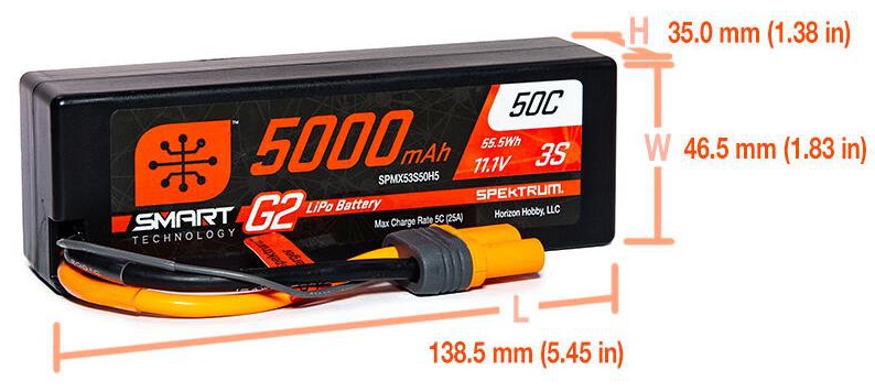 - Spektrum™ G2 Smart Charger required (or earlier Smart Charger with G2 update, available at spektrumrc.com)