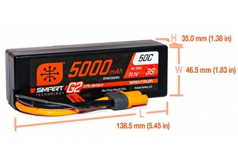 Spektrum™ Smart G2 LiPo 50C batteries also maintain an error log including the number of over-heat, over-discharge and over-charge incidents. This data can be helpful in assuring that the battery you've chosen is right for the application. Innovative Spektrum™ Smart G2 LiPo 50C batteries are so easy to use, they nearly take care of themselves. It's easy to achieve peak battery performance, reliability and longevity with Smart G2 technology!