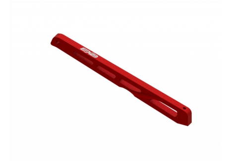 The ARRMA Rear Center Aluminum Chassis Brace ARA320567 is made from high quality aluminum and features ARRMA red anodizing for enhanced durability and style. It is designed to reinforce the rear chassis area while offering a striking appearance.