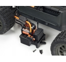A two-piece molding screwed to the VORTEKS™ Stadium Truck's chassis serves as its electronics module, containing a waterproof receiver box, servo mount and ESC tray.