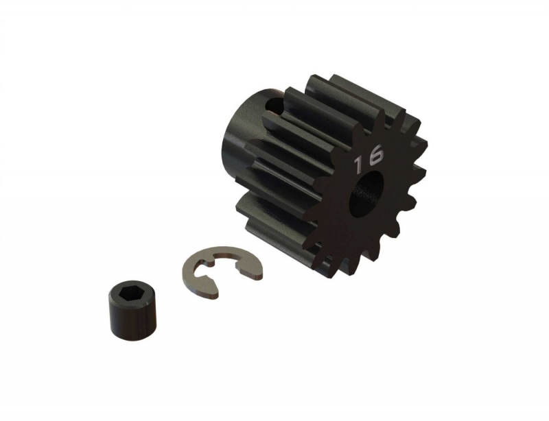 - Product Type: Arrma ARA310963 16T Mod1 Safe-D pinion gear, Arrma ARA310963 steel pinion gear upgrade, Arrma ARA310963 HD pinion gear for RC cars, Arrma ARA310963 pinion gear with wide tooth profile and steel durability, Arrma ARA310963 gear with D-shaped hole and threaded set-screw