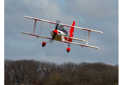 Yes. The Bind-N-Fly RC biplane with AS3X stabilization and SAFE Select flight envelope is designed to streamline the flying experience. All electronics are factory-installed, and pilots simply bind the receiver to a compatible Spektrum transmitter to get started. AS3X technology provides automatic stabilization, making the aircraft feel larger and more locked-in during flight. SAFE Select can be enabled during binding to add self-leveling and angle limits, which are especially helpful for newer pilots or those transitioning to aerobatic platforms. These features can be toggled via transmitter switch, with no programming required.