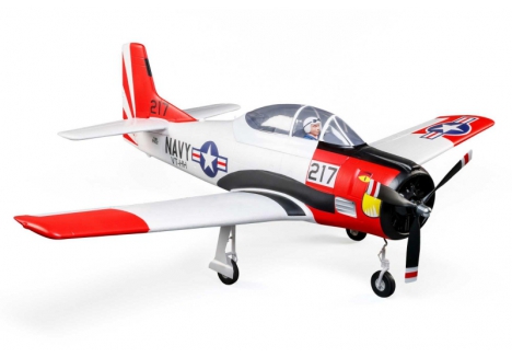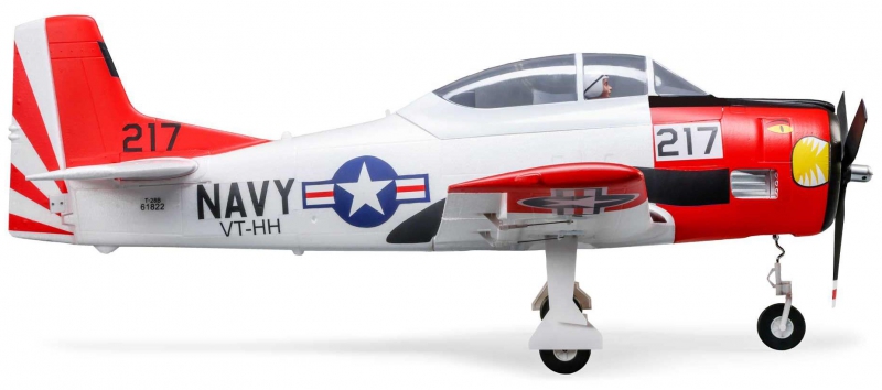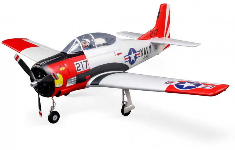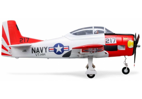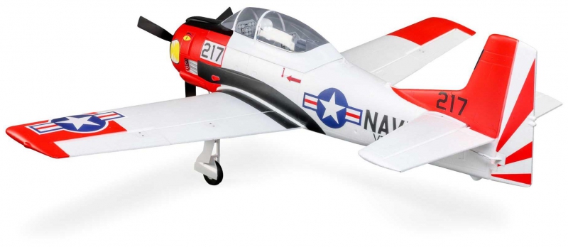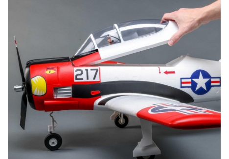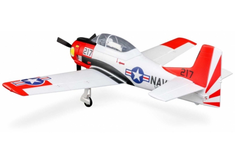 This E-flite® T-28 Trojan 1.2m has been updated and upgraded to be the Smartest, most powerful, and easiest to fly scale model of the popular warbird yet! Like the original version, it includes functional flaps and retracts that make it a true "full-house" warbird model. Its factory-installed brushless power system features a specially-tuned motor, 3-blade prop, and 70-amp Spektrum™ Avian™ Smart Lite ESC that combine to deliver an abundance of thrust with a 3S LiPo battery, or more speed and nearly unlimited vertical performance with a 4S battery — without any modifications or upgrades. With a compatible receiver (such as the AR631 included with the BNF® Basic version) and Smart or non-Smart batteries, the Smart Lite ESC can deliver a variety of real-time power system telemetry data including motor RPM, current, battery voltage, and more to Spektrum AirWare™ equipped transmitters. The AR631 receiver installed the BNF Basic version also includes exclusive AS3X® and SAFE® Select technologies, which help to make this a perfect "next step" or first warbird model for anyone ready to move up after successfully learning to fly their first or second RC airplane. The durable airframe has an abundance of scale detail including panel lines, an instrument panel, and a pilot figure, plus it comes factory-finished in the iconic red and white trim scheme with updated nose art and markings. It can be flown by experienced pilots in spaces as small as a large park or soccer field, and by intermediate pilots at more traditional RC and other large fields. The 1.2m size allows for easy storage and transport without disassembly, or the one-piece wing can be removed and reinstalled easily for even greater convenience. Best of all, no glue is required for final assembly so you can have the T-28 Trojan 1.2m ready to fly in less time than it takes to charge a battery!