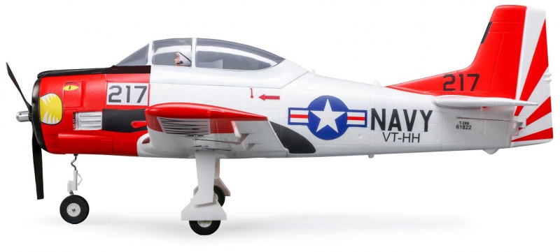 The original E-flite® T-28 Trojan 1.2m not only captured the looks of the full-size U.S. Navy trainer but also came with functional flaps and retracts right out of the box. This updated version is even better equipped — it's the Smartest, most powerful, and easiest to fly "full-house" T-28 model yet! The 3S and 4S compatible power system includes a specially tuned motor and a 70A Smart Lite ESC making it capable of easy scale-like and sport flying for intermediate pilots, or flying at higher speeds and performing higher energy aerobatics in the hands of experienced pilots. The BNF® Basic version also includes a telemetry-capable AR631 receiver with AS3X® technology – plus it now includes optional-use SAFE® Select technology so it's even easier to fly than the original! That makes this T-28 Trojan 1.2m the smart "next step" after a trainer and first "full-house" warbird choice for a wide range of pilots.