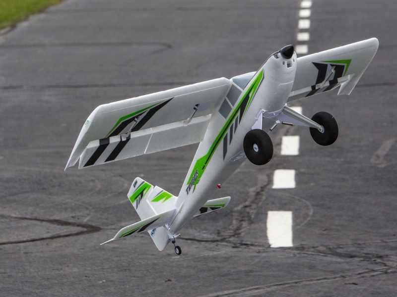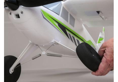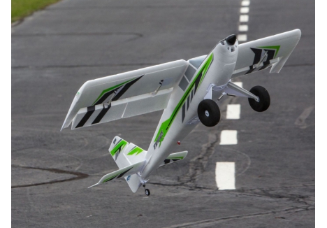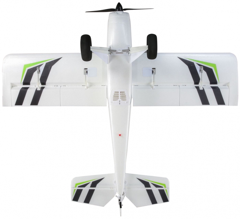 The new wing design has a shorter span yet almost as much wing area as the original, plus it features drooped wingtips and can be equipped with the included optional-use leading edge slats for improved slow flight and STOL performance. These features, along with the lightweight design, oversized flaps and high-power brushless motor make it possible to spring into the air or float down to land in as little as two feet or less.