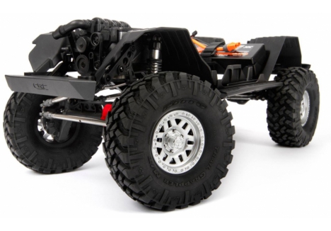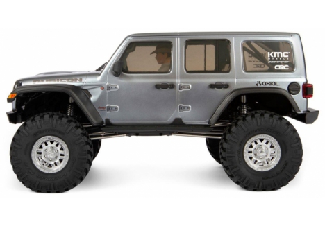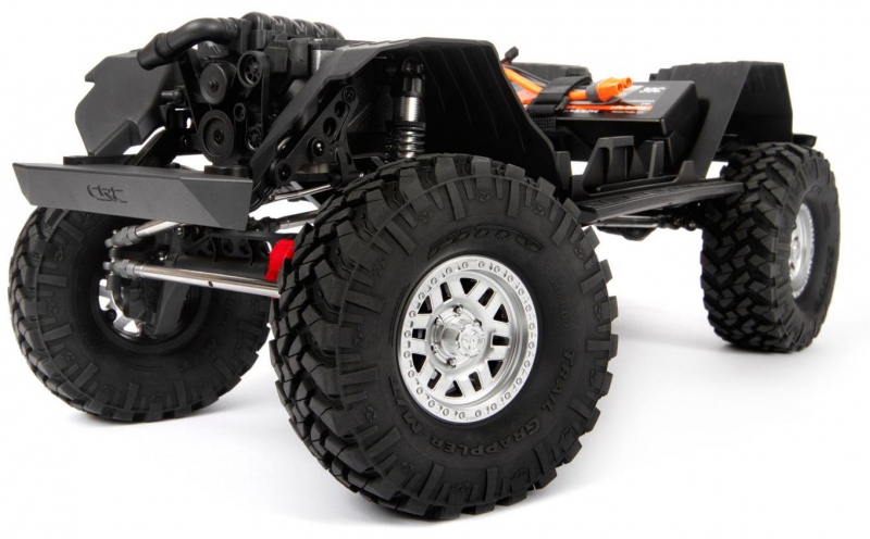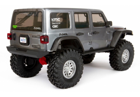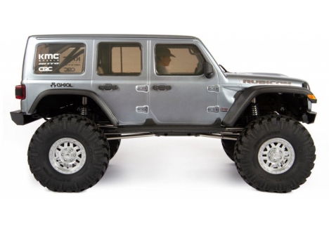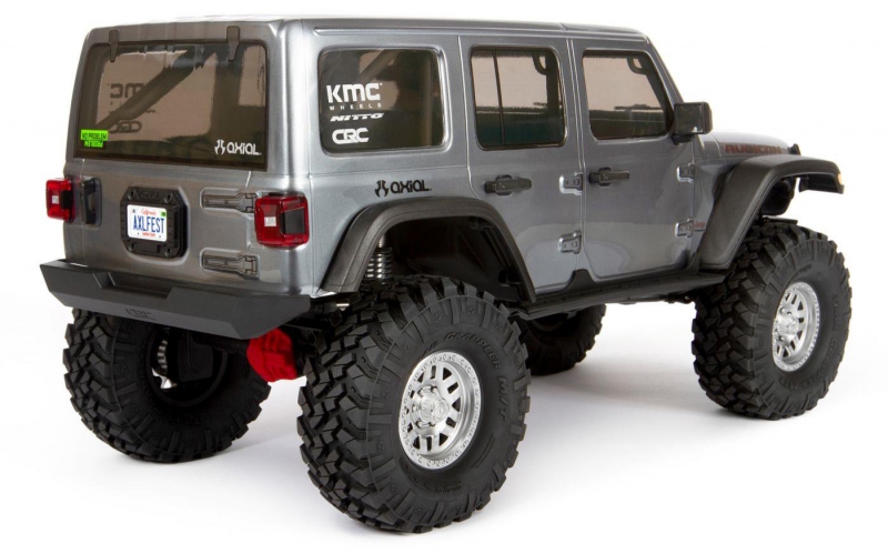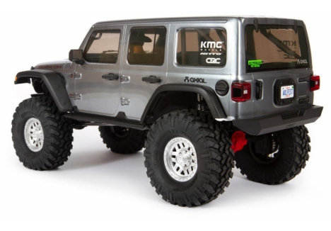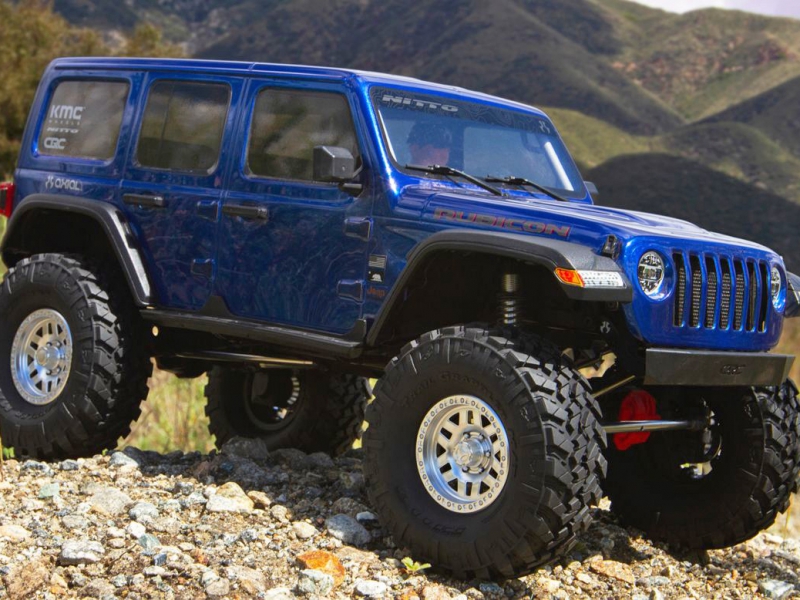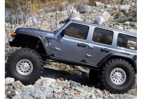 To top off the chassis, the kit comes with a clear Jeep® Wrangler Unlimited four-door body that's ready for finishing however you like. Scale details include a roll cage, front hood vents and cowl, windshield wipers, mirrors, door handles and more, plus a detailed interior. New taller and wider, officially licensed Nitto Trail Grappler tyres on 3-piece licensed KMC Machete beadlock wheels add more scale realism and more grip on dirt, rocks, and all other off-road trails.