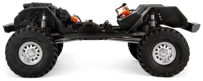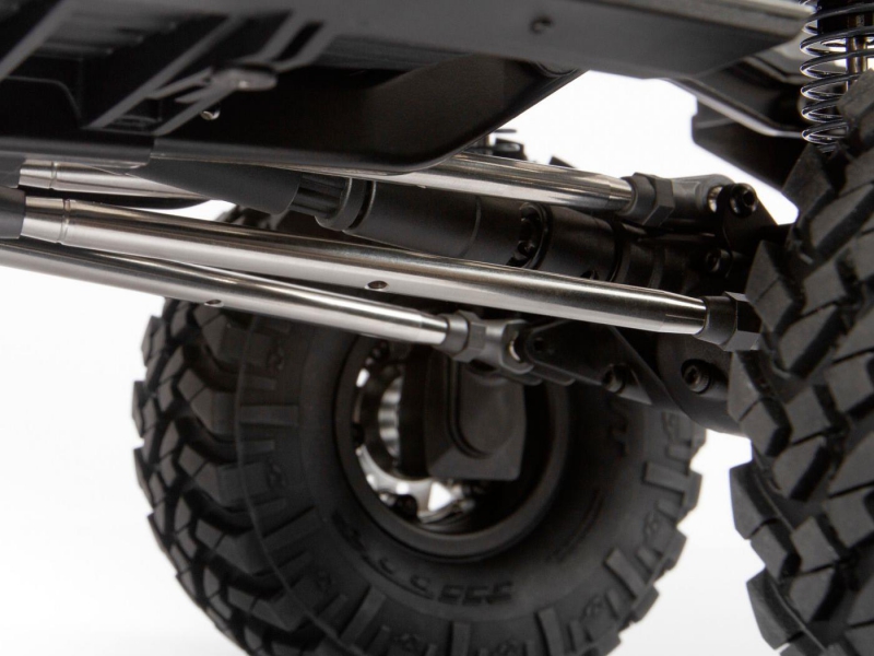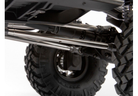 The suspension geometry is based on the SCX10™ II but refined slightly for the new chassis layout. The front suspension has been optimized to reduce bump steer, while the rear 4-link reduces torque twist.